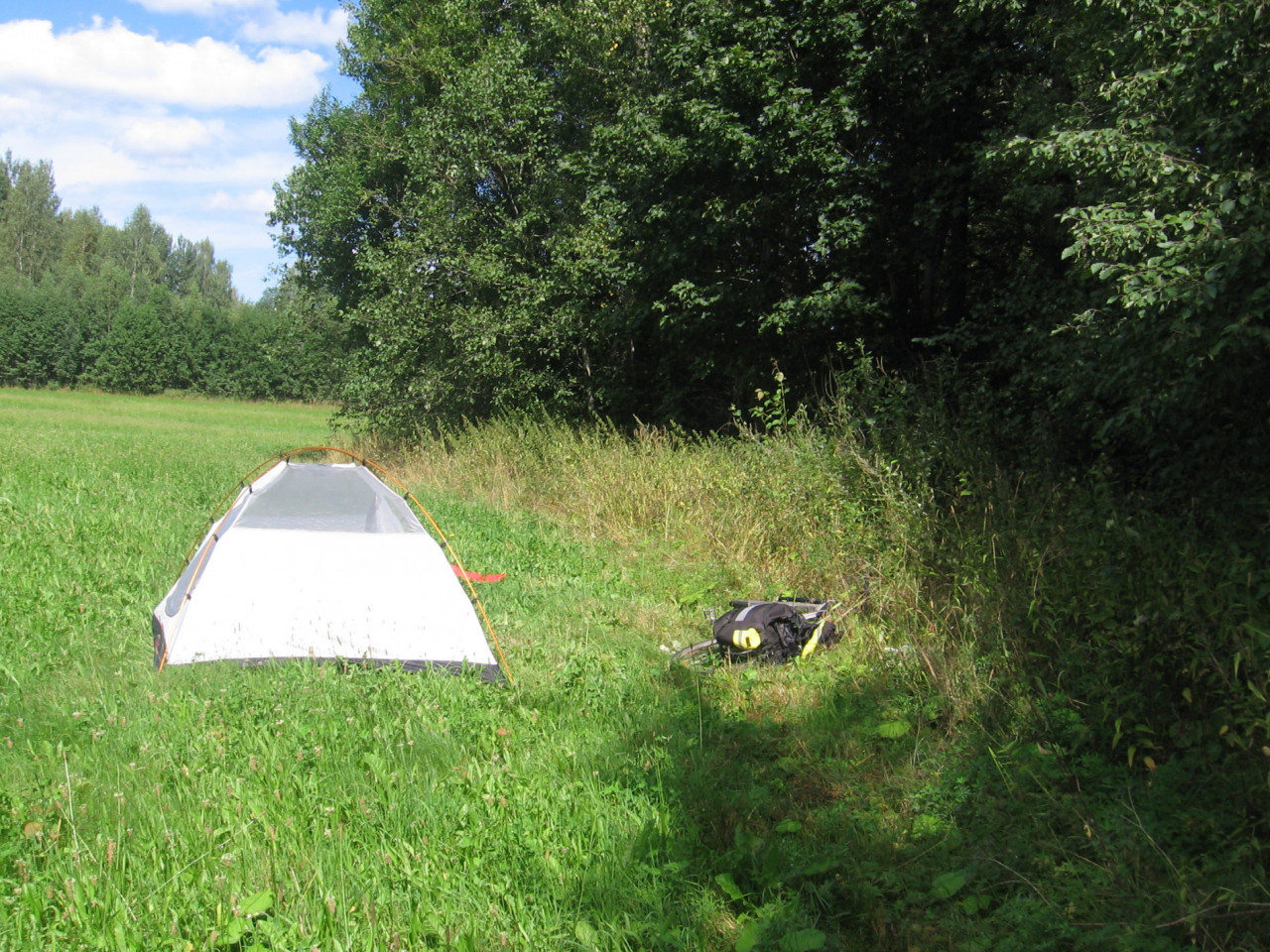 Свернул с шоссе на привычную лесную дорогу. Сколько то проехал и сошел за угол леса на убранное злаковое поле. Поставил палатку без тента, чтобы отдохнуть часика четыре. Отдых на автобусной остановке не считается. Было еще раннее утро. Предварительно почитал новости. Акции солидарности идут полным ходом.