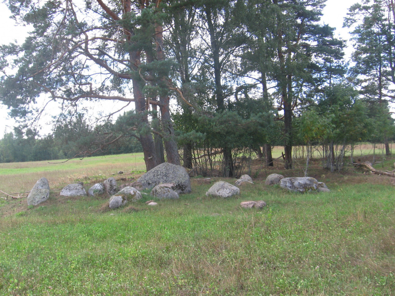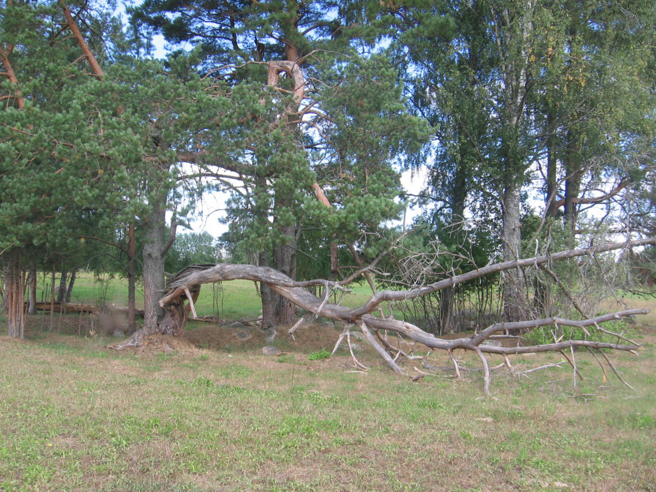 Слева от дороги встретился уникальный ансамбль из валунов и причудливых деревьев. Типа оазиса в центре небольшого поля. Потом случились вакханалии насилий и убийств. Три фактора сошлись одним разом. Три самых неблагоприятных. Участок с песками, потом пик жары и пик активности слепней. Были классические крупные оранжево-полосатые. Этих было меньше, но и кусались они убойно. Другие в большинстве своем коренастые, не крупные. Их не достаточно было просто прихлопнуть. Требовалось еще чуть ли не растереть в мокрое место. Один раз пиздонешь, так он еще живой, шевелиться и не падает. Одеть пришлось мастерку со стоячим воротником и длинными рукавами. Не смотря на жарищу.
