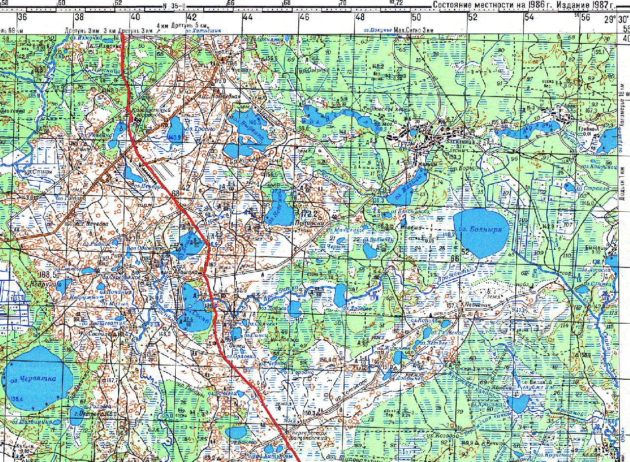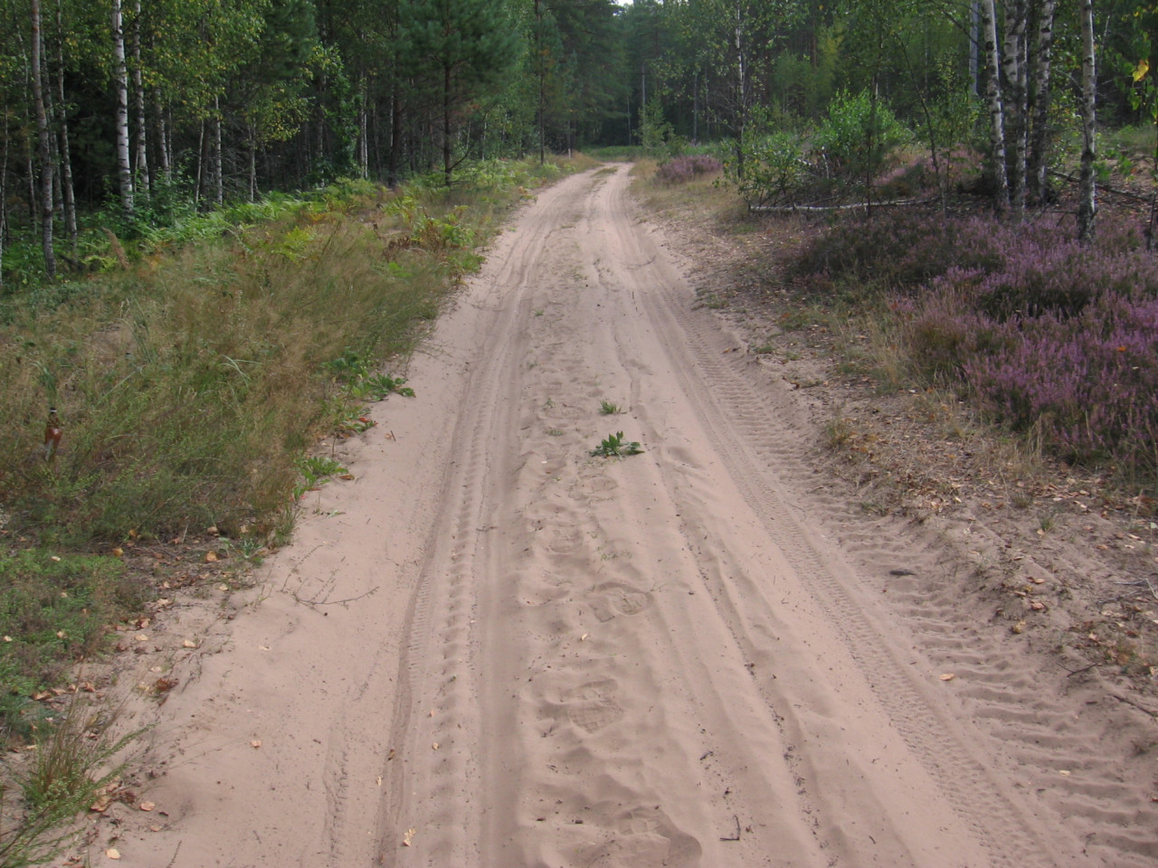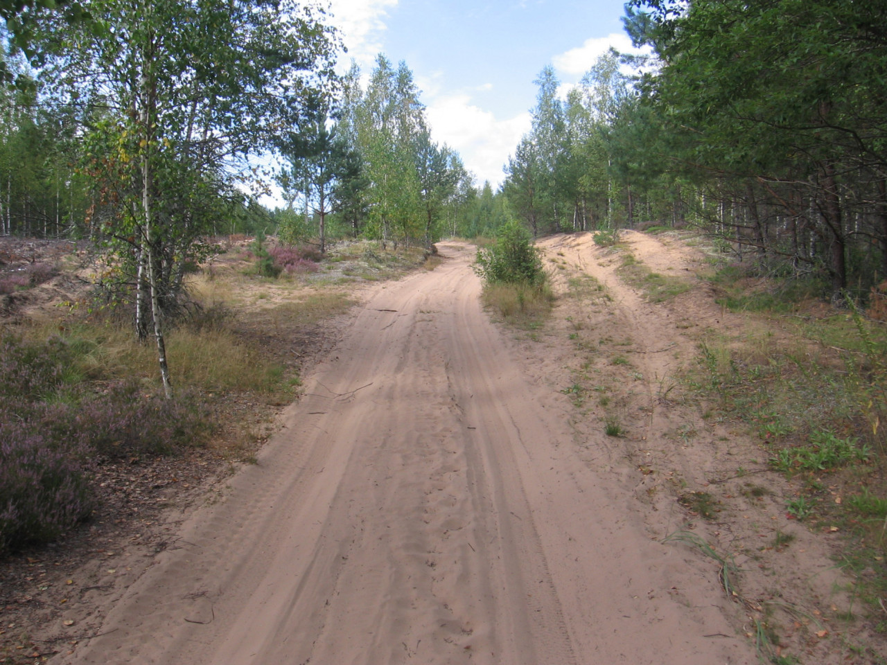Уподобляясь весельчаку Тихомирову Кириллу, скачал нужные топографические карты. Это место называется урочище Хатьковский Перекресток. Мне дальше на северо-запад. Да я и ехал на северо-запад. После этого самого перекрестка дорога испортилась. Начались пески, жара усугубилась. Глаз стал подбуксовывать. Вода уже была выпита, набрать ее среди Дретуньского Полигона негде. Только оставалось ехать и крепиться до Дретуни. К жаре присоединились тяжелейшие испытания – мухи и жалящие слепни. Такое полчище, что даже на скорости от них нельзя уйти. Велосипед – это все-таки средство для осени…