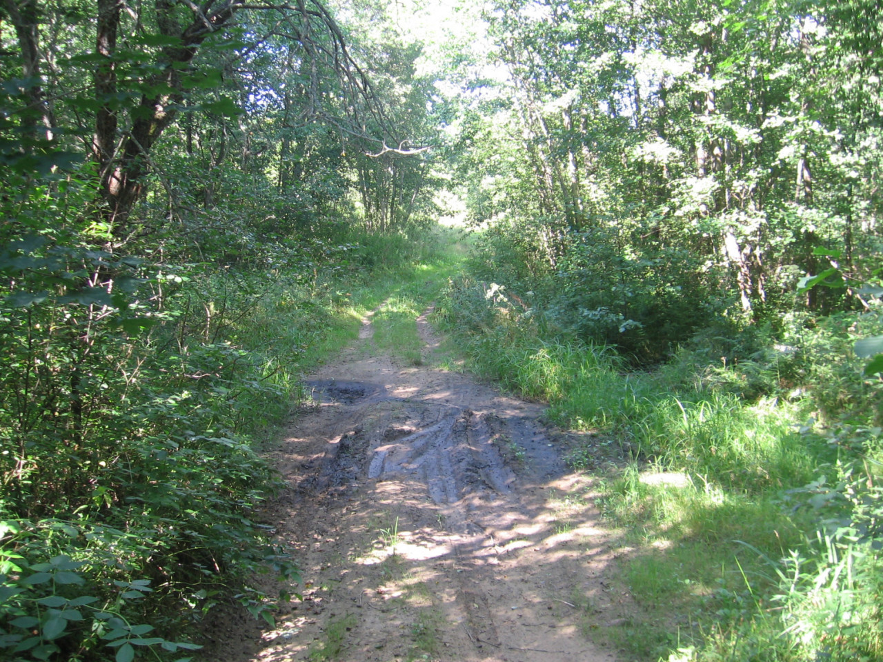 Потом были километров восемь опять же лесной дороги с дух сторон. Она довольно рельефна. Лес в основном лиственный, влажный.