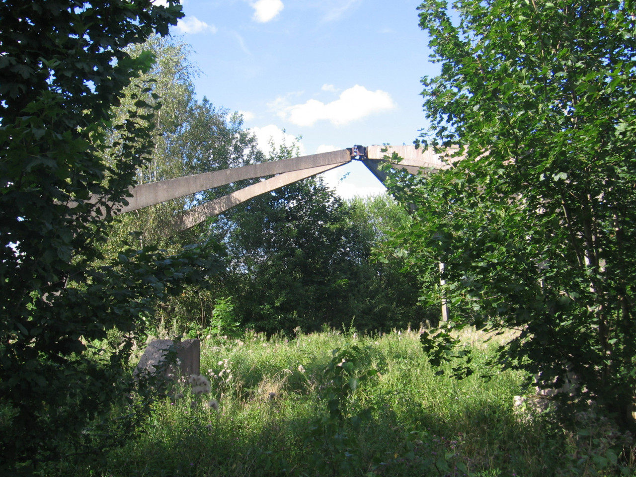 Через Юховичи проходи трасса Полоцк-Санкт-Петербург. Машин для такой трассы было совсем мало. А деревня переживает далеко не свой золотой век. Смотрел репортаж Андрея Тихановсого про разъебанную провинцию в Беларуси и про запустение в Ошмянском районе. Он показывал остатки некого сооружения не понятного предназначения в виде бетонных опор-лучей, сходящихся кверху. Что-то подобное, но только ниже и лучей меньше (часть, очевидно, обвалилась) увидел я здесь в деревне Юховичи. О том, что это когда-то могло быть остается теперь только гадать.