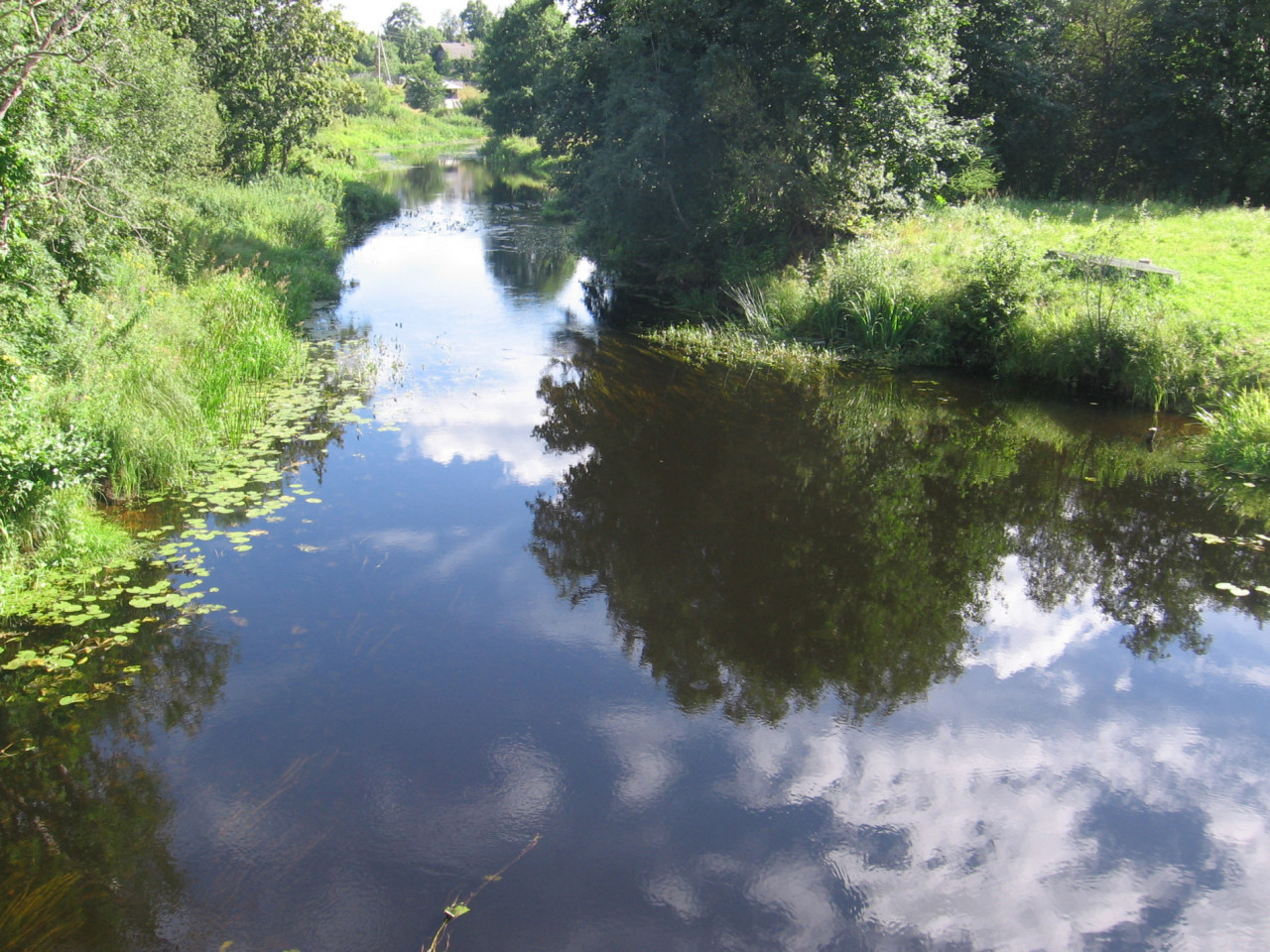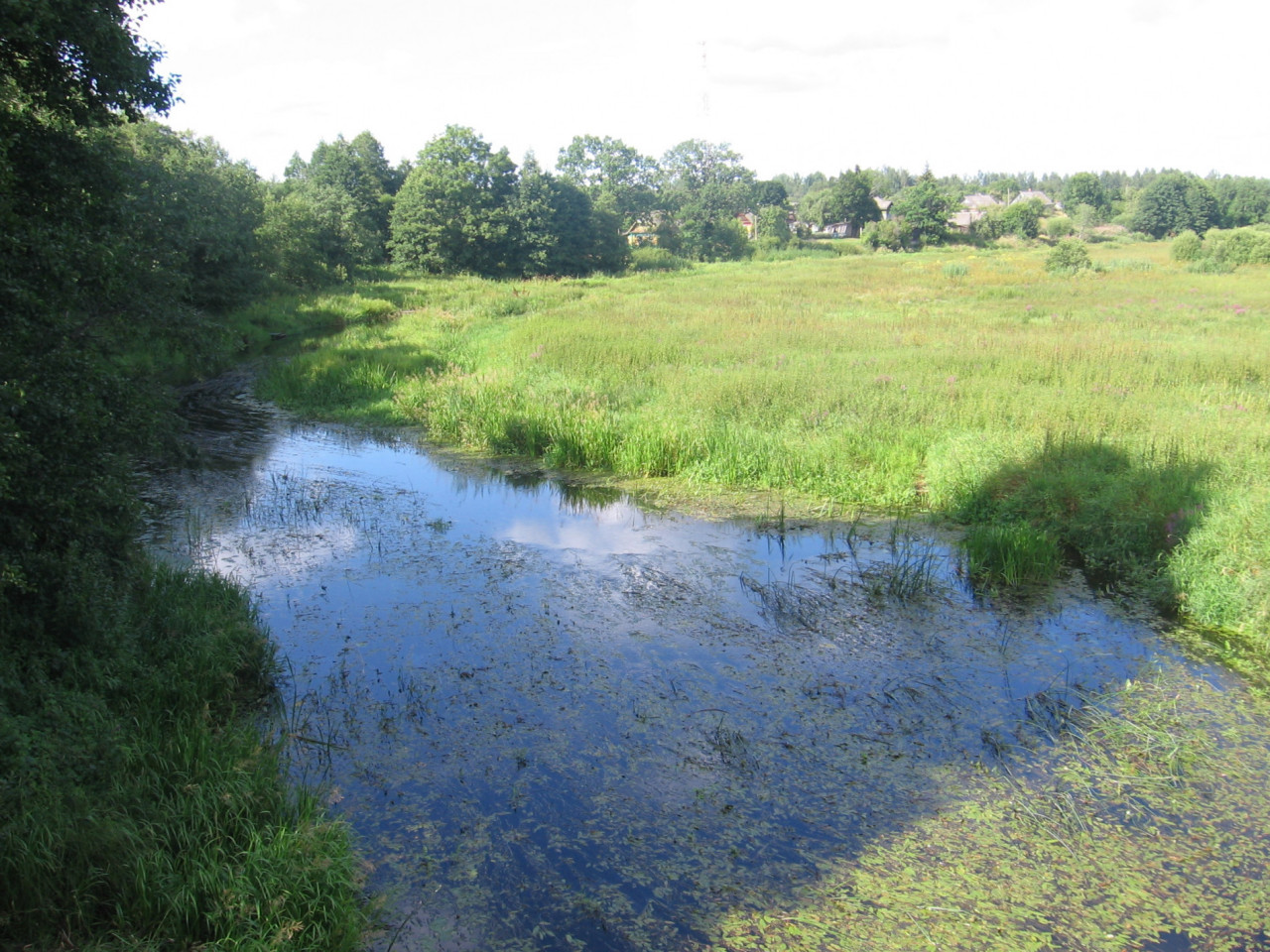 Перед Дретунью река Полота. Она здесь с моста показалась мне вполне проходимой. Как все прочие в августе сильно зарастает. Тяжелые плети водных растений перекрывают местами полностью русло. Слегка колыхающиеся на течении, они примерно к середине октября лягут на дно. До моста через Полоту (течет в Полоцк) на карте многочисленные строения в той или ной степени связанные с деятельностью полигона. Теперь это все ликвидировано. Полигон ныне не более чем природный резерват.