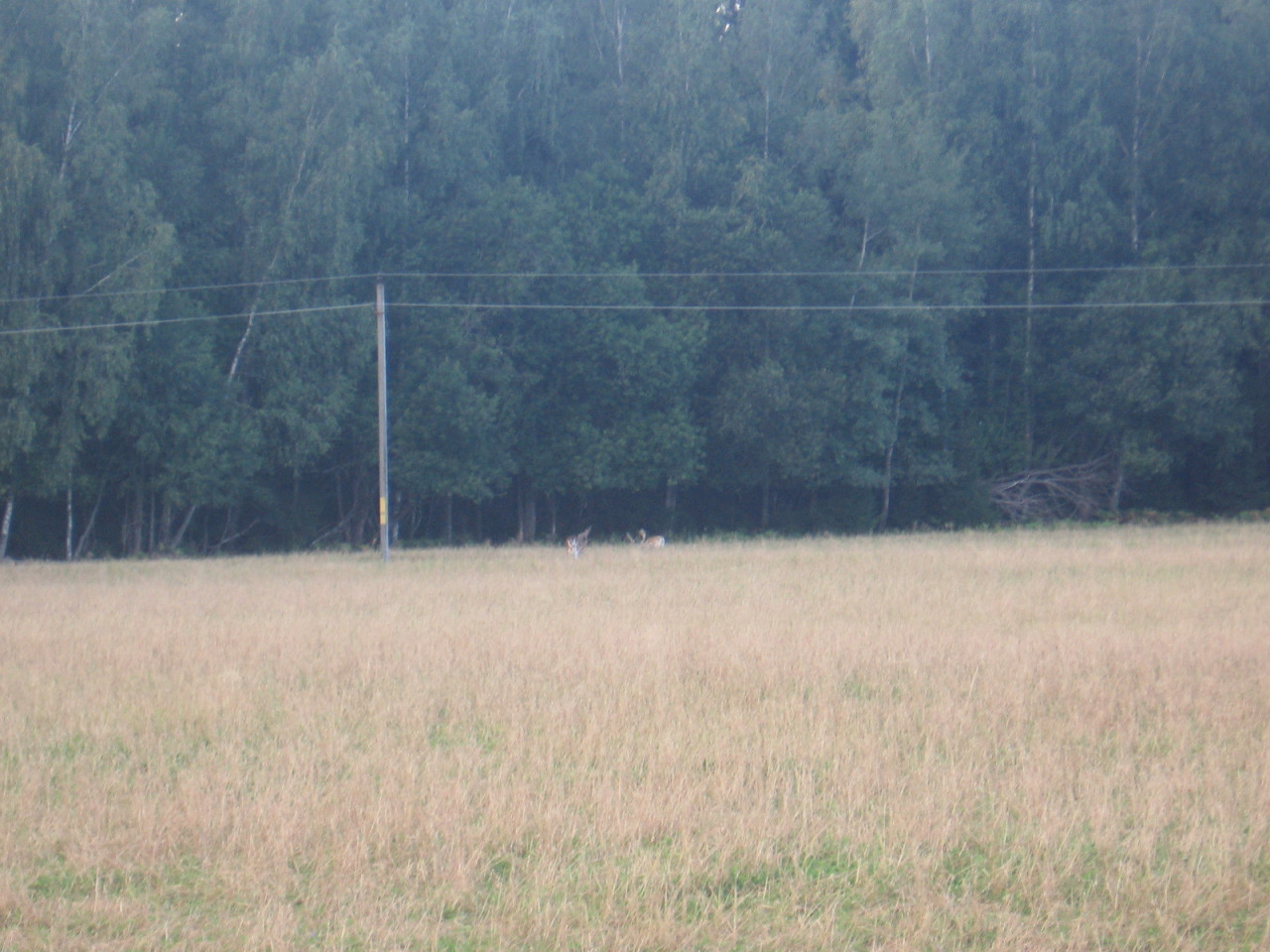 Снова малиновая пыль и зубо и жоподробильная дорога. Если бы не поменял недавно седло, со своим прошлым уже бы остался без жопы. Дорога до Освеи все время на запад. Кое-где лес отгорожен сеткой. Скорее всего, ее предназначения – барьер для животных. Или чтобы не мигрировали в Россию, может, чтобы не ходили оттуда. Не заставили себя ожидать и животные. На краю поля перед лесом беспечно паслись несколько оленей.