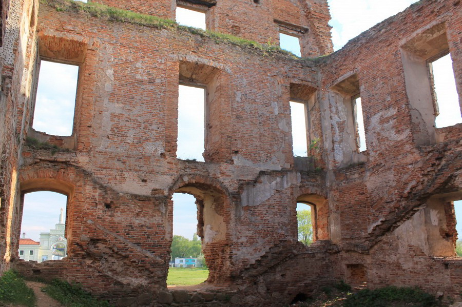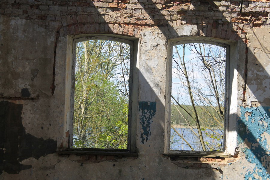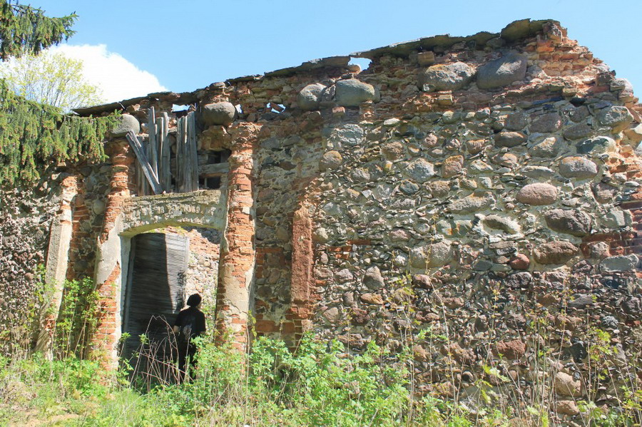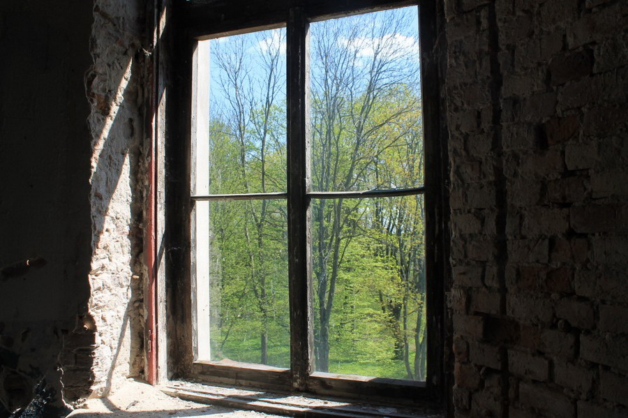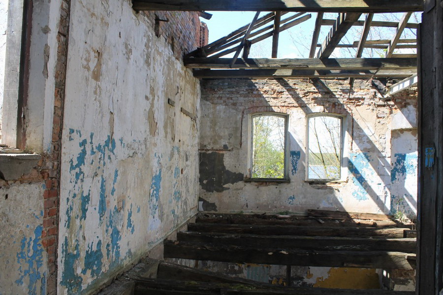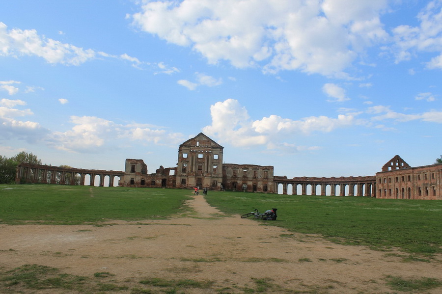 Сам ЖелудОк (а также Заря Коммунизма) оказался действительно интересным местом, сохранившим не только панскую усадьбу (впрочем, достаточно новую), но и прилагавшиеся к ней постройки для челяди, одна из которых до сих пор частично заселена. В отличие от Лиды здесь за 20 000 (за двух человек с двумя велосипедами) нам открыли двери и провели экскурсию по вполне еще сохранному зданию, которое в разное время успели облюбовать военные (оставив после себя звезду на потолке), разномастные гости (оставив после себя настенные надписи и рисунки), кинематографисты (оставив после себя обгоревшие двери, снесенные колонны и кое-какие разрушения поскромнее) и ласточки (оставляющие после себя гнезда). С последними сейчас начинают конкурировать новые собственники здания, грозящиеся его отреставрировать.