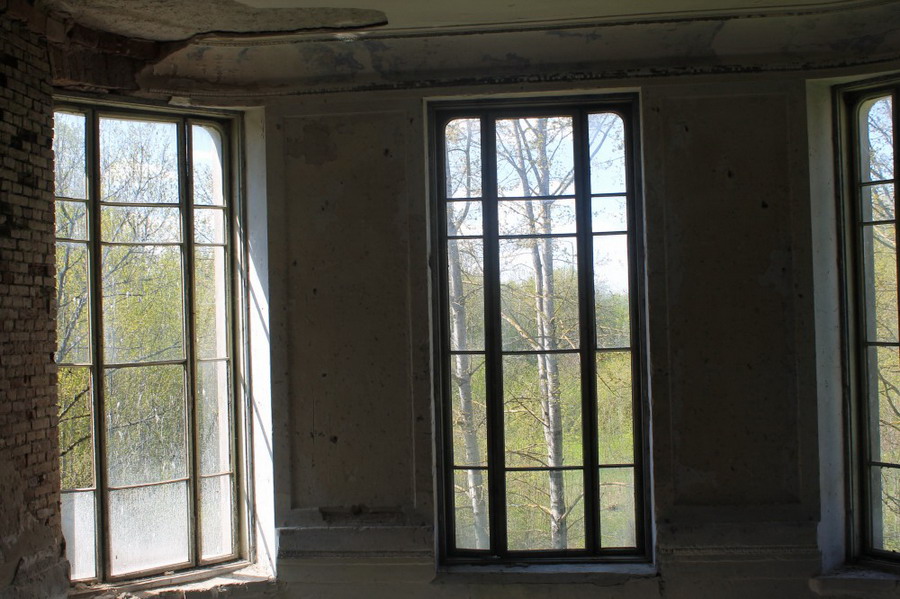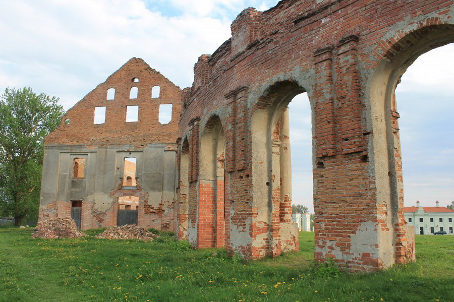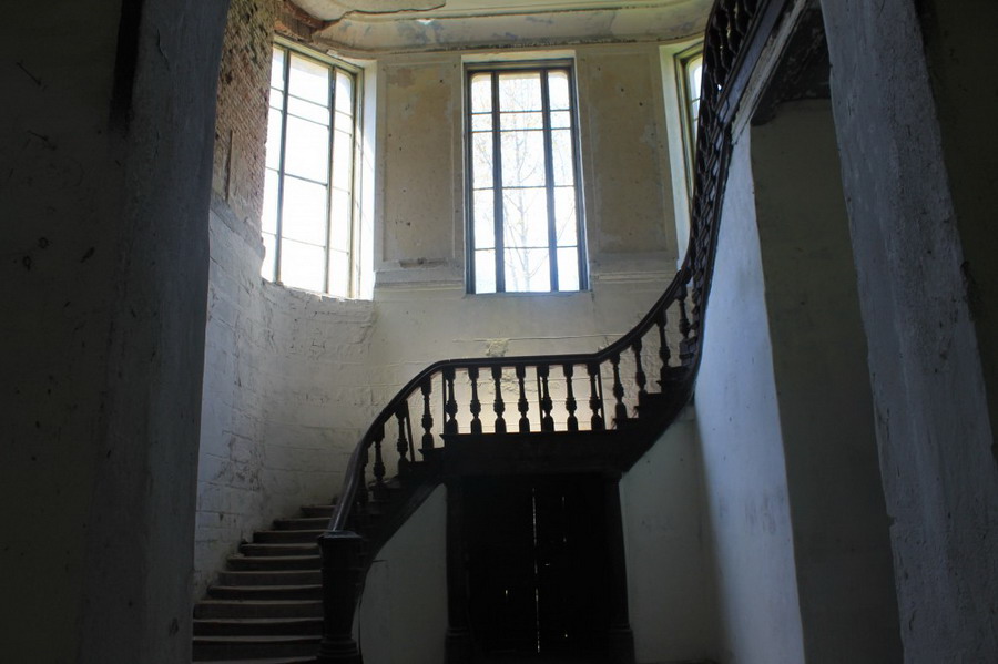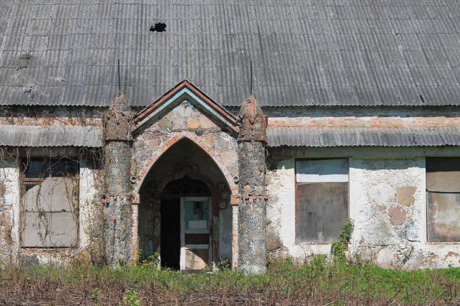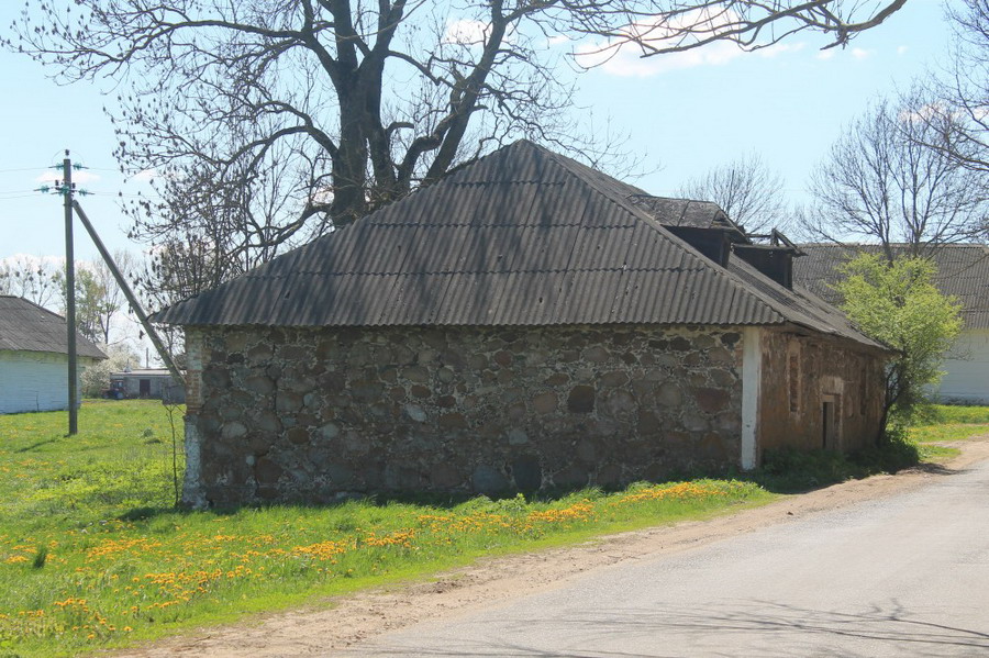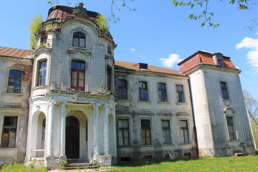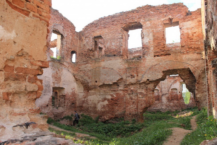 Сам ЖелудОк (а также Заря Коммунизма) оказался действительно интересным местом, сохранившим не только панскую усадьбу (впрочем, достаточно новую), но и прилагавшиеся к ней постройки для челяди, одна из которых до сих пор частично заселена. В отличие от Лиды здесь за 20 000 (за двух человек с двумя велосипедами) нам открыли двери и провели экскурсию по вполне еще сохранному зданию, которое в разное время успели облюбовать военные (оставив после себя звезду на потолке), разномастные гости (оставив после себя настенные надписи и рисунки), кинематографисты (оставив после себя обгоревшие двери, снесенные колонны и кое-какие разрушения поскромнее) и ласточки (оставляющие после себя гнезда). С последними сейчас начинают конкурировать новые собственники здания, грозящиеся его отреставрировать.