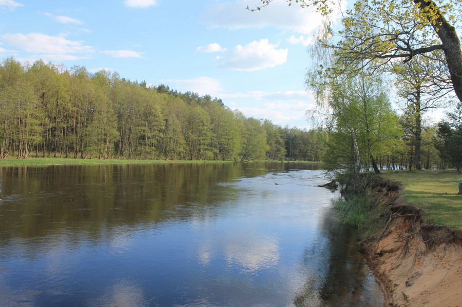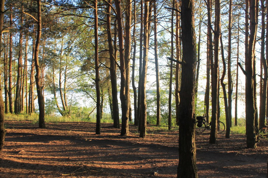 Посетив мост через Неман и собственно саму реку, мы въехали в пущу. Дорога приобрела отчетливо более живописный характер. Подгоняемые попутным ветром (!) мы стремились на встречу с директором заказника, который встретил нас лично и лично же препроводил до места стоянки на реке Щара (пользуясь случаем, хочу отметить уровень сервиса). На стоянке к нам присоединилась Аня, у которой не получился вело-, но получился автопоход.
