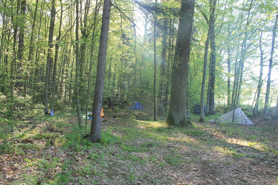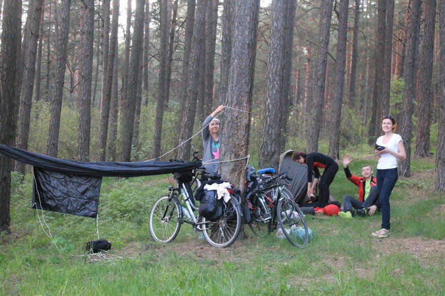 На ночь расположились в первом попавшемся лесном массиве у дороги. Это была самая массовая ночевка за весь поход – 7 человек. К сожалению, вышло так, что гитары не было, пришлось обойтись страшными рассказами о походах, что нисколько не умаляло веселого и бодрого духа присутствовавших.