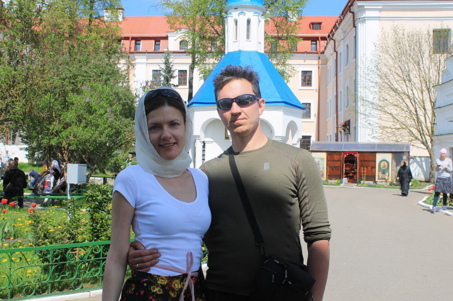 8.05. Достаточно длинный перегон по Р99, на которой было непривычно много машин, и Жировичи, где девушки были приодеты в соответствии с местной модой (см. картинку), а народу было вообще очень много с нашей одичалой точки зрения. Мое мнение: Жировичи, как и Лидский замок, были необходимы «для галочки», но произвели наименьшее впечатление.