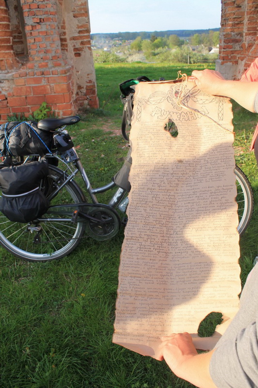 5 мая. 6.00. Минск, вокзал, электричка; затем в 8.40 дизель до Лиды и ранним (по моему убеждению) утром в 11.40 мы оказались в стартовой точке нашего культурно-образовательного маршрута. Первым наспех посещенным объектов стал Лидский замок, которому откровенно не повезло. Во-первых, он был слишком близко от вокзала, во-вторых, за его посещение изнутри надо было платить 30 000 старых рублей, в-третьих, ноги чесались начать наконец-то ехать на велосипеде. Посему, удостоив замок бесплатным взглядом от входа (учитывая, что внутри ничего не сохранилось, такого взгляда почти достаточно), мы поспешили покинуть город Лиду, оказавшуюся, к тому же, весьма недружелюбной к велосипедистам: обилие тротуаров и высоченных бордюров утомляет очень быстро. На заправке на выезде из Лиды началась мистическая часть нашего похода (впрочем, мы еще об этом не знали). Первым проявлением мистики оказалась полная невозможность приобрести в Гродненской области ее карту при обилии карт любых других мест земного шара и прочей вселенной.