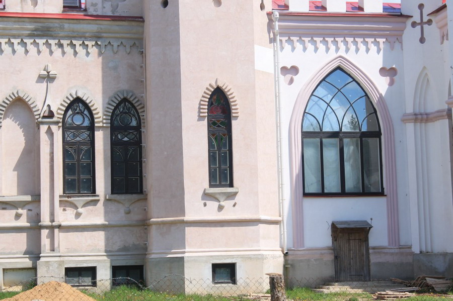 Второй мистической деталью поездки оказался ветер в спину в первые два дня. Любой, кто когда-нибудь ездил на веловипеде, знает: ветер дует в лицо (изредка в лицо и сбоку), а дорога ведет в гору. Но на трассе М6 всё было иначе: ветер дул в спину, катиться было не легко, а очень легко и так мы незаметно добрались до Мурованки, где тут же посетили местную церковь, один из 2 сохранившихся в Беларуси образцов оборонительных церквей.