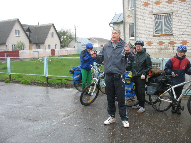 Вот, пожалуй, и все начальные сведения о команде. Осталось описать намеченный маршрут и прогноз погоды. Анонсированный маршрут был многообещающим: Минск – Барановичи на электричке, а далее Барановичи – Слоним – Сынковичи – Ружаны – Косово – Ивацевичи. В каждом из указанных пунктов множество памятников истории, архитекту-ры и культуры. Обогатившись духовным наследием, оставленным предками, из похода мы должны были вернуться совсем другими людьми. Правда, было одно «но». В булгаков-ской Москве людей портил квартирный вопрос. В велопоходе людей портит погода. Её нам никто не обещал. Точнее, все обещали, что её не будет, т.е. все три дня будет холодно, будет идти гаденький дождь, а некоторые в прогнозе для устрашения рисовали молнии, такие же, как в петлицах офицеров войск СС.