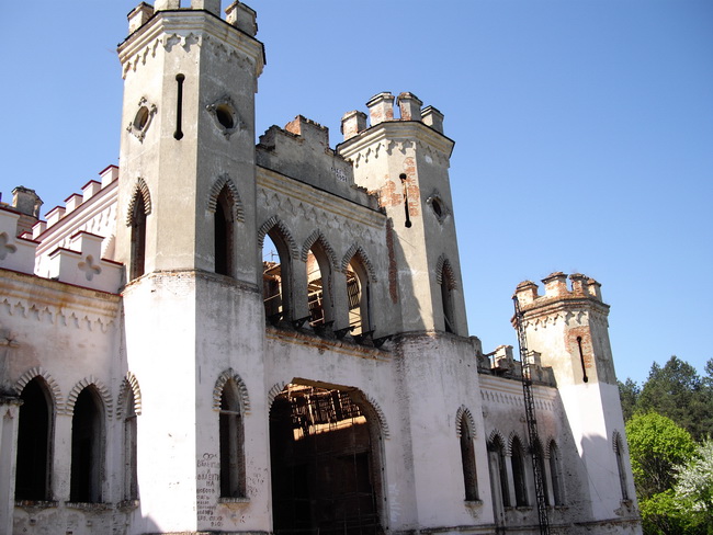 Дворец находится на реставрации, окружен заграждением, но с позволения прият-ного общительного мужика, нёсшего службу по охране этого шедевра белорусского дойлiдства, мы проникли на территорию дворца и детально обследовали его. Мужик со-провождал нас и по ходу вёл оживлённое повествование. Оказалось, что дворец благопо-лучно дожил до освобождения Беларуси от немецко-фашистских захватчиков, и был со-жжён партизанами уже после отхода немцев, якобы, для их устрашения. Если это дейст-вительно так, то я чего-то не понимаю!