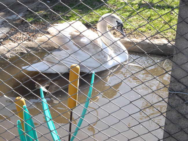 Лесная тропинка неожиданно выскочила из леса и повела нас к Ружанам. На самой окраине посёлка тропинка пробегала мимо усадьбы с небольшим водоёмчиком во дворе, в котором, горделиво изогнув голову, плавал красавец-лебедь.