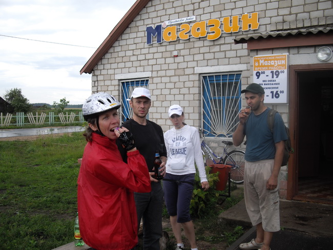 Ветер ощутимо напирал в спину, велосипед даже на горку казалась забирается сам. Авангард догнали в деревне Сергеевичи. Здесь был магазин. Купили яиц, чтобы изжарить на сковороде.