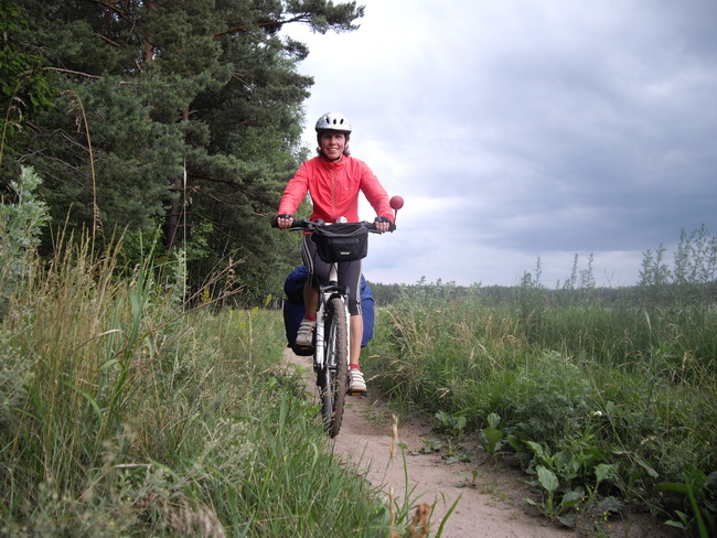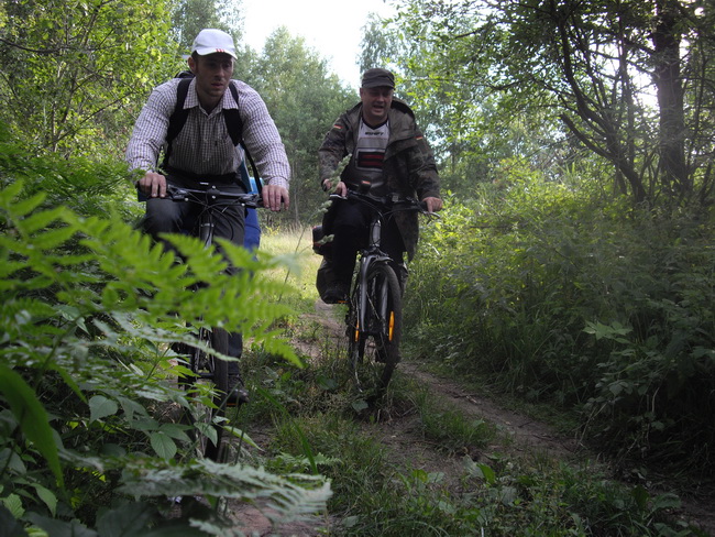 Эдуарда деморализовал сразу Сережа Климович. Он сообщил между прочим, что шины у него пошире, чем у Эдика, а значит ему по песку и ехать проще. Этого хватило. Эдик за эту идею ухватился, потом за прочие другие, связанные с не таким велосипедом, и ехать совсем не хотел. К моему удивлению со стороны моей Луши всё сегодня было тихо. Ей даже наоборот этот процесс поездки через лес на велосипеде доставлял видимое удовольствие. Удовольствие до оваций. Выходит от синдрома "плохого велосипеда" и эффекта "плохой дороги" я её вылечил.