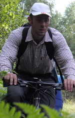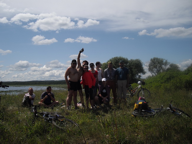 Дима Трусов как раз позвонил, только я это успел про него подумать. Он был где-то уже на подходе - еще один, девятый (из активных) участник нашего мероприятия. Он недоумевал: где на этом лугу вдоль реки Талька можно вообще остановиться. Отправили встречать Ингвара, однако его деморализовал Сережа: мол не торопись, еще посиди. Ингвар так и не сумел выбраться. Глаз понял, что дела тут не будет, поехал встречать Сам. Дима прибыл, хоть и после ночного дежурства, в хорошем расположении духа на адаптированном под путешествия велосипеде и с велорюкзаком.