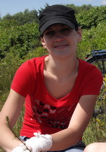 Ехали дальше хорошо и довольно быстро. Несколько километров по трассе Пуховичи-Негорелое. Раскисший утром Эдуард Лимонов теперь собрался с силами и стал демонстрировать сильные стороны характера. Они с Сережей у двоих даже "сели к Глазу на колесо". До деревни Сергеевичи двигались по секретной лесной дороге. Лес смешанный и влажный. Местами дорогу или преграждает упавшее дерево, или другое случается препятствие: темная лесная лужа с застоялой водой, или колеи, продавленные трактором до черных жирных рытвин, которые приходится проскакивать боком по полочке с обнажившимися древесными кореньями. Дорога выбежала из леса на свекловичное поле и огибала его дугой. Я оглянулся. Все оставшиеся пятеро были в поле зрения: мерно покачиваясь, крутили педали. Остановились возле узкоколейки, которая пересекала нашу лесную дорогу. Здесь внимание наше привлек некий мертвый древесный исполин, который лежит давно. Неровный комель был ребрист и заморенован дождями, но не гнил. Алена.jpg)