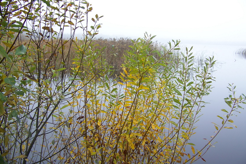 Погода была не определенная. Сразу как будто пасмурная и мрачная, но с пробивающимся солнцем. Рядом река. Наш правый берег был лысоват. Противоположный левый выполнен пойменным лесом. Оттуда проглядывали дубы, клены с багряными, желтыми, оранжевыми, зелеными листьями, шары вечнозеленой омелы. Осень моя любимая пора года.