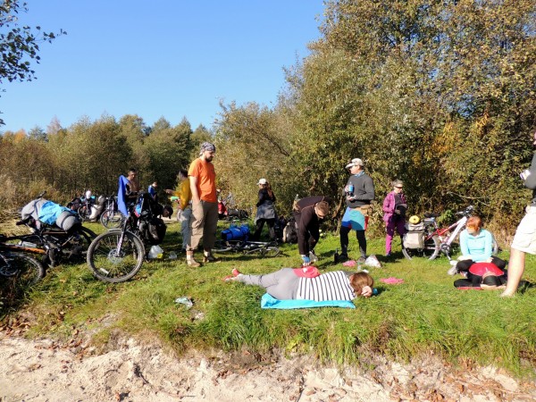 Традиционный октябрьский поход вышел очень фотогеничным. Сопутствовала идеальная погода - солнце, природные и антропогенные объекты были отличными декорациями для фотосессий. Маршрут получился порядка 120 километров, при этом Глаз, прокладывая трек, изменил своим привычкам - дорога была ровной, завалов и болотистых троп на пути не встретилось. Выезд получился массовым - заявленные 30 или даже больше участников проехали маршрут "от" и "до", несмотря на то, что некоторые участники опоздали на утреннюю электричку.
