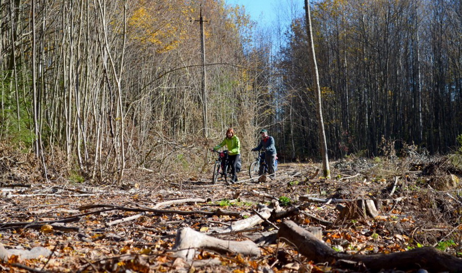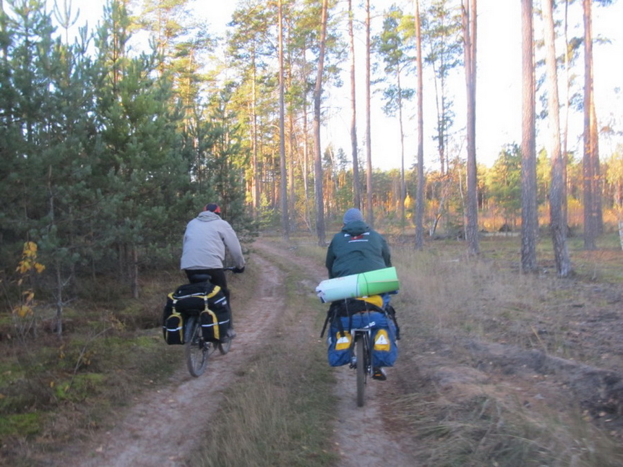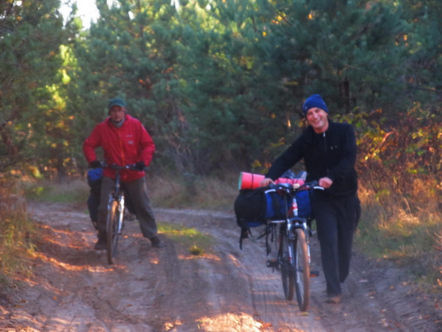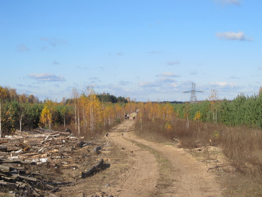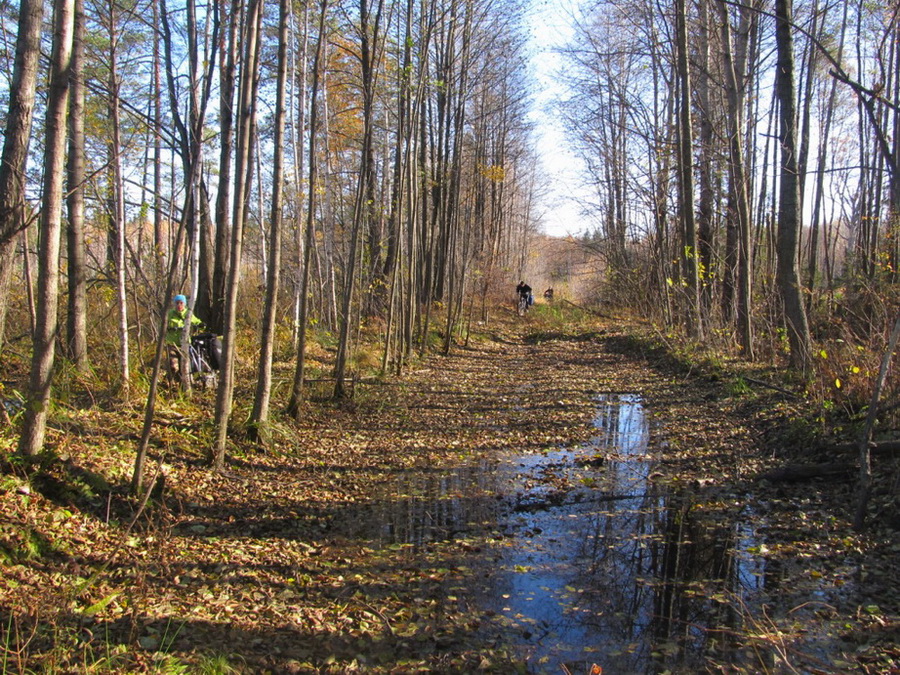 А еще путь наш был просто песней - то песок, то вырубка с многочисленными палками-бревнами и поваленными деревьями, то болото, то жесточайше изрытая кабанами лесная почва, и опять - песок, песок, песок. Народ пробуксовывал, падал, катил.