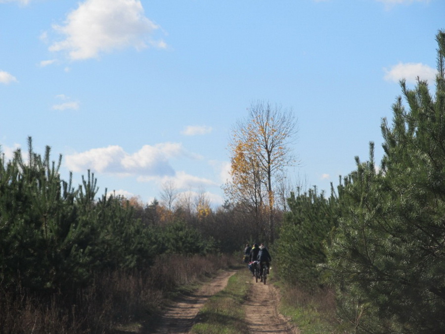 Я не мастер описывать треки, скажу только, что путь мужественных велотуристов лежал через леса, поля, деревни и болота, и даже через святое место - священный источник и церковь Проща.
