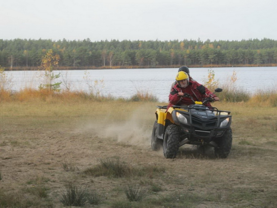 Утром катания на квадроцикле продолжились. Особенно запомнились катания Димы Трусова и Глаза. Не знаю, что там еще делал с Димой Эдик (издали не было видно), но тот постоянно орал. Особенно живописными были виды в профиль - Эдик, квадрик и Дима с открытым ртом.