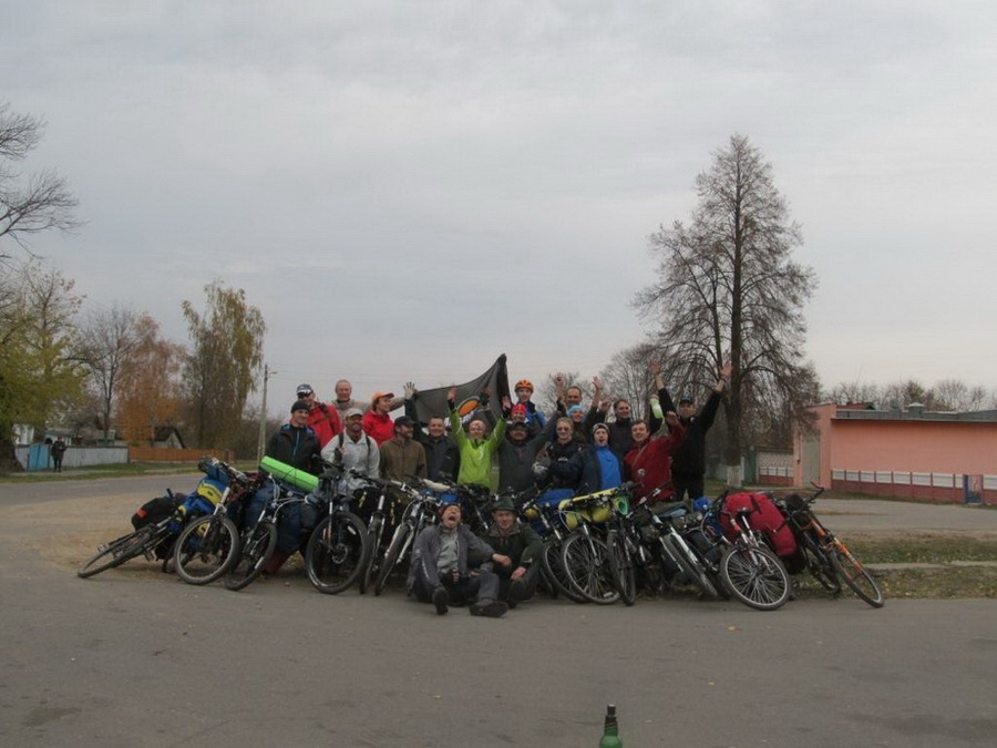 Встретились мы с другими звеньями под мостом через реку Тальку, как и в позапрошлом году. Развели костер и приготовили чай, подвесив котелок на сложную конструкцию из бревна и велосипеда. Отдохнули. В программе оставалось озеро Гремячее. Усталый народ в большинстве своем решил не ехать на это далекое непонятное и не изведанное озеро, кроме кучки монстров-синяков. Стали прощаться. Все по очереди обнялись, расцеловались и... монстры передумали ехать. Логично было снова поздороваться (то есть снова всех переобнимать), но почему-то никто не стал. И вот - сначала дружно, а потом, сильно растянувшись, группа доехала до электрички и закончила поход.