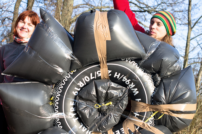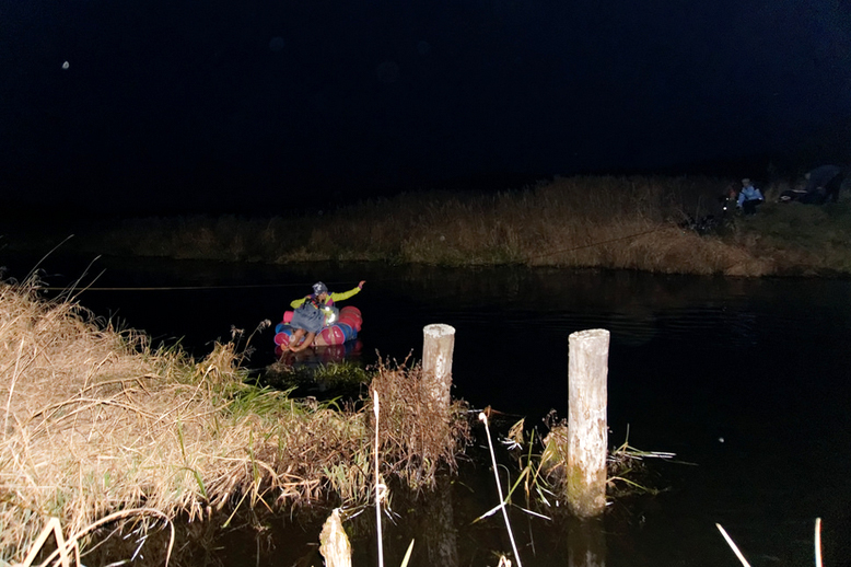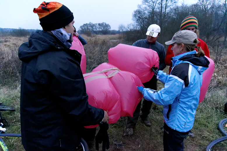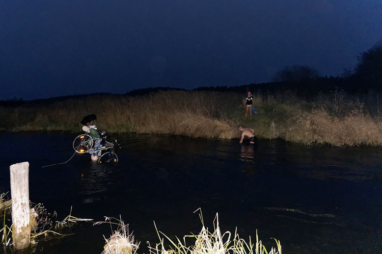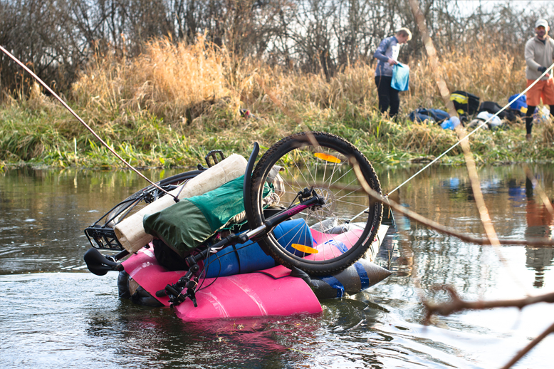 Сознательные стали мастерить плот. Из мусорных пакетов. Я до последнего не верила, что так бывает. Просто обман зрения какой-то. Саша Курченок потихоньку перетаскивал вещи и малогабаритных людей в розовых трусах. Все получилось. Речка оказалась не глубокой, многие перешли своим ходом-бродом. Остальное перевезлось. Не повезлось только моему велосипеду, он слегка притонул, чему я даже успела обрадоваться, но рослые, загорелые, хорошо сложенные мужчины все исправили.