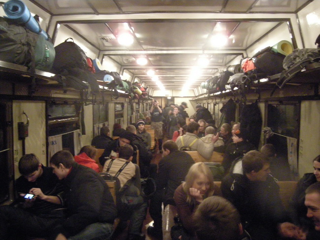 Как это чаще и бывает, выехали вечером и на электричке. В составе распределились дискретно. Я ехал во втором вагоне с Беляшовым Колей, Андреем, похожим на Колю Свистунова, также Максимом П. и его женой К. Как это чаще и выходит, электричка шла до Осиповичей и отправилась в 19.28.