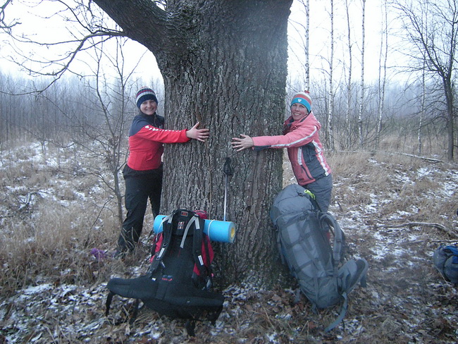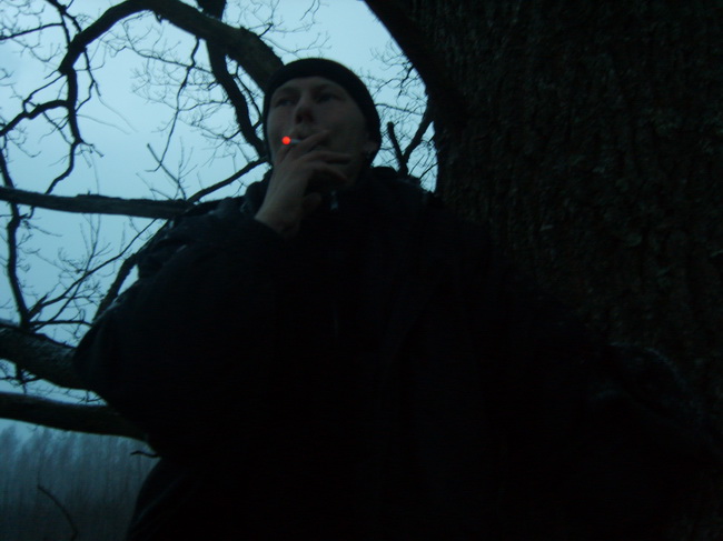 Рядом за деревней был здесь большой дуб. Публике я его позиционировал, как патриарх. Патриарх был поистине могуч и высок, но еще не так стар. Крона была коренастая и раскидистая, но еще без узловатых коленцев на ветвях и сухих коряг, корявых пальцев, прыщиков, наплывов и наростов. Его вдвоем обхватить можно было только долговязым и длинноруким, и то едва-едва. Вечерело, в воздухе медленно и плавно летали белые снежные мухи. Здесь же устроили мини-пикник. Часть группы загадочным образом пропала, но и без них было много человек. Из пришедших никто не знал, куда делась часть состава. Глаз стал злиться: