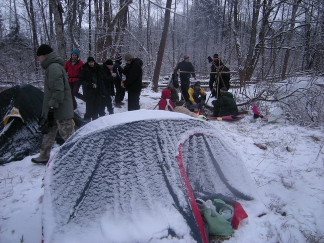 Зима в 2011-12 задалась такой же дерьмовой, как в 2007-08. К середине января не видели мы ни снега, ни морозов. Земля даже нисколько не подмерзла, озера не стоят. А накануне мероприятия (в четверг) так мне (автору повествования) пришлось и вовсе работать по дачному хозяйству под проливным не прекращающимся дождем. Как чаще и получается, погода препятствовала делу. Однако, в «зимний» лес по предварительной сводке намерелось отправиться аж 24 человека! Семеро кандидатов покинули состав в последний день (как всегда понос, или из Удмуртии приехала двоюродная бабушка – с кем не бывает, но почему всегда в последний день!). Неожиданно добавилось вместо семи трое.