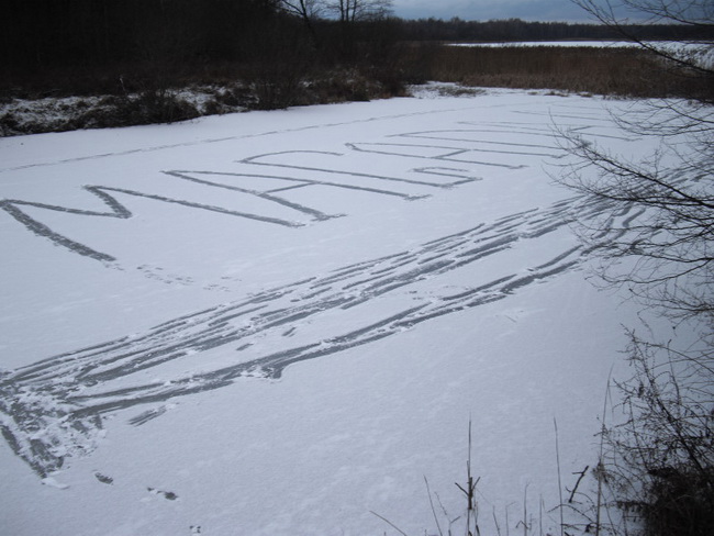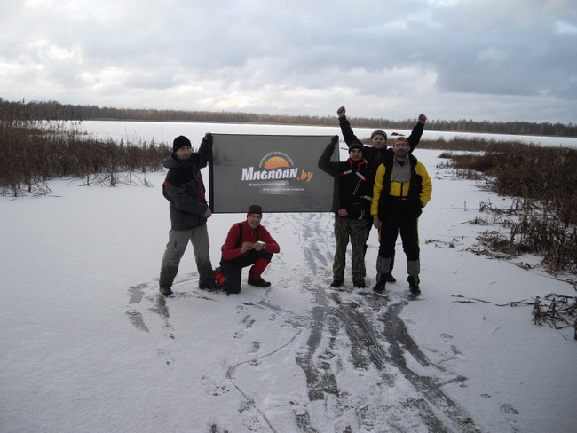 После предварительной проверки, лед был расценен, как адекватный. По пузырькам воздуха можно было его расценить, как сантиметров в пять толщиной. В небольшом заливчике пробовали написать надпись Magadan. by. Надпись получилась столь большой, что не только некуда было засунуть оставшееся by, она не влазила даже в кадр фотоаппарата.