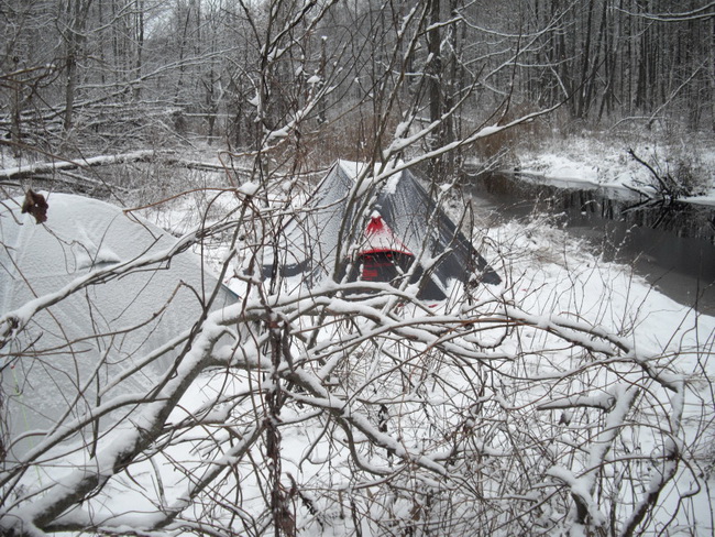 Ночевал в палатке я один. Проснулся часов в пять утра с болезнью, название которой сушняк. Ничего пригодного для питья возле костра не было. В нем ещё тлели угольки. Вокруг было всё завалено слоем снега. Я, кажется, вчера что-то пропустил: откуда взялся этот снег.