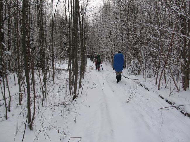 Позднее появились и завалы и еще позднее подлесок. Шли друг за другом змейкой. Рассуждали. За последним после прошедшей группы оставалось в снегу уверенная тропа.
