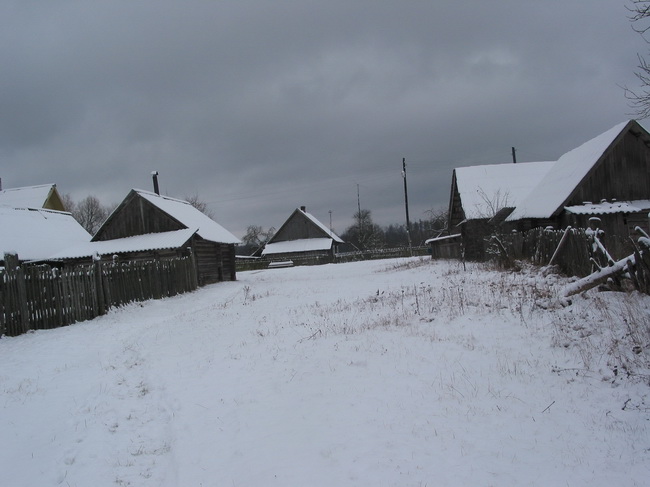 После развилки на север дорога стала более запустелой и привела нас в небольшую деревню Ямполь. Первый дом был с признаками обитания, но без таковых присутствия. Был и другой такой дом, подальше (все остальные нежилые и совсем уж запущенные). Во дворе его были какие-то мужики - по габитусу охотники. Они, похоже, уже заскучали и захотели немного поговорить.