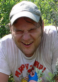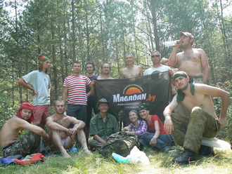 В Осиповичах заходили в магазин ларькового типа. Возле магазина промышлял не то совсем бомж, не то барыга. Барыга увидел нашего пузатого Игоря и принял сразу за своего. Прочей одежды, чтобы переодеться Ингвар не взял. Был в той, что ходил в болотинг.