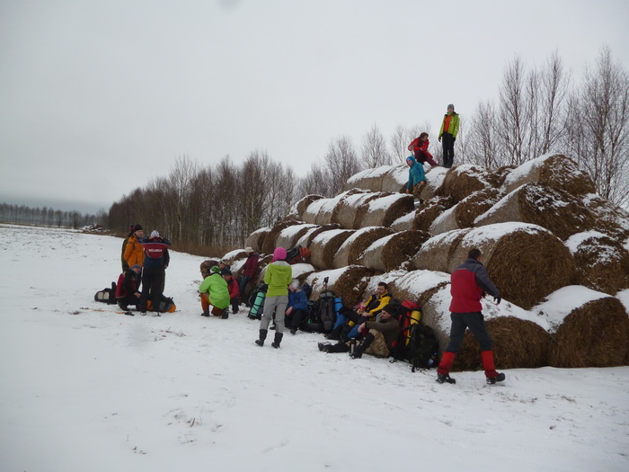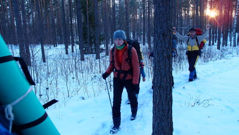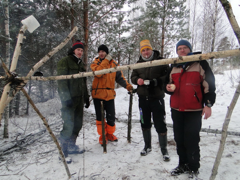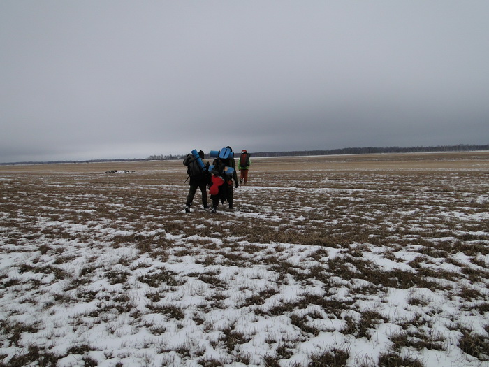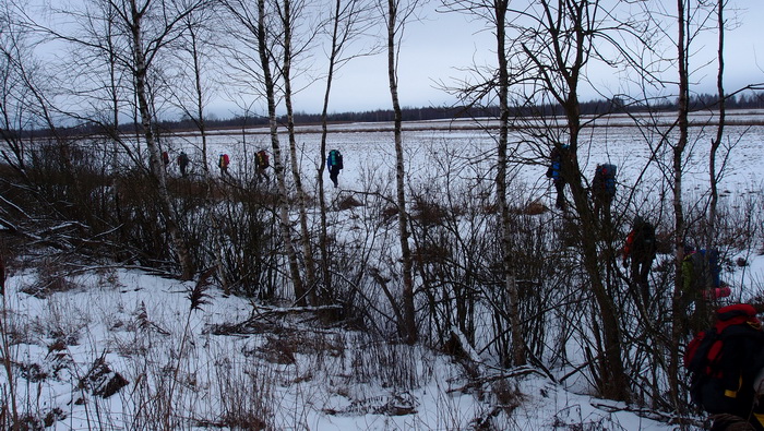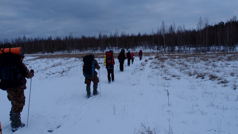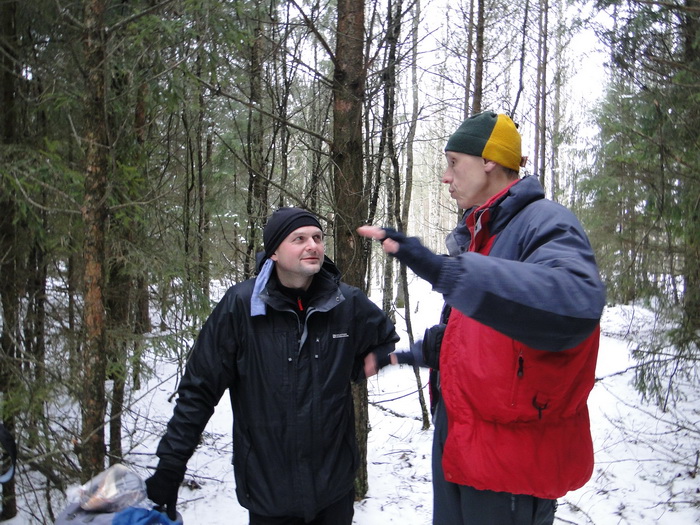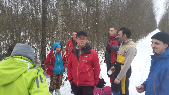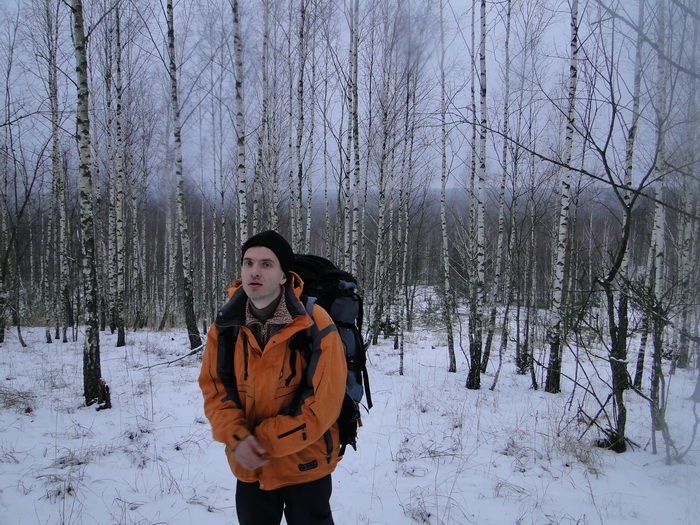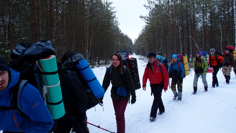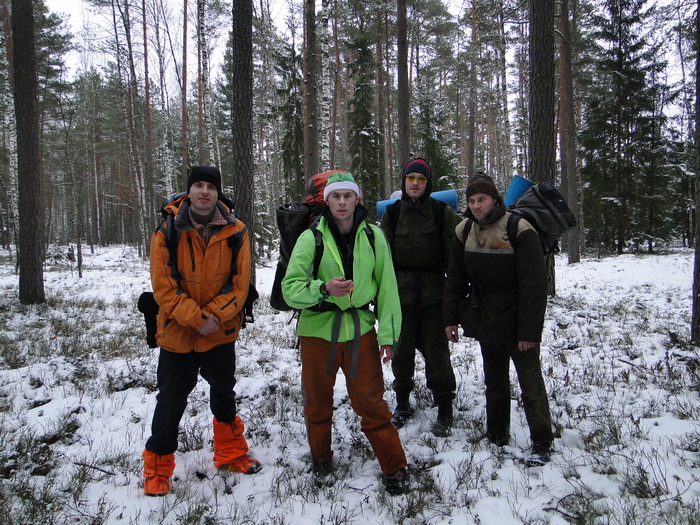 После очень короткого привала мы выдвинулись на место встречи с бусом на Осиповичской трассе. Вследствие темноты и сильного снегопада, я по ошибке прихватил рюкзак А. Бая и ломанул за Глазом. Рюкзак приятно удивил своей эргономичностью. Андрею ничего не оставалось, как взвалить на плечи мой. Достигнув места встречи, Бай с облегчением сбросил его, сказав мне: «А это так надо, чтобы одна шлейка была в два раза длиннее другой, и самый тяжёлый груз лежал сверху?» В общем, учиться мне ещё и учиться быть взрослым туристом.