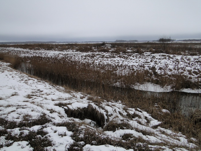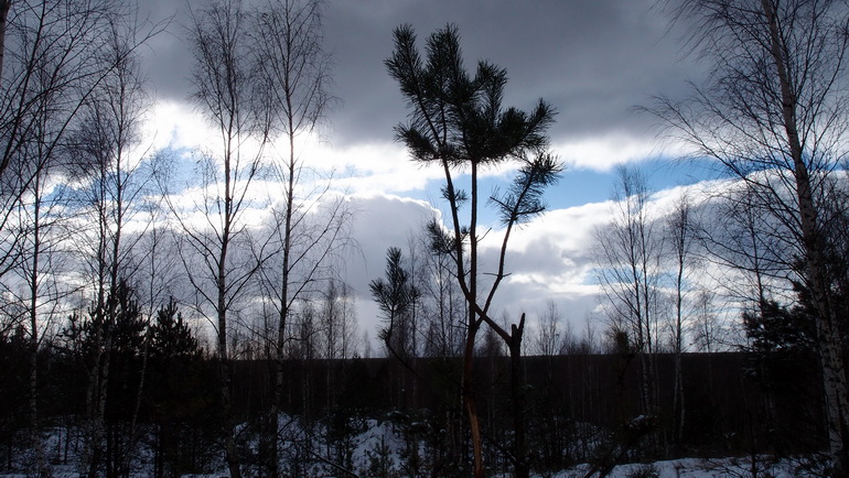 Если сначала насыпь узкоколейки была очень даже высокой и крутой, то вскоре она сошла на нет и стала совсем незначительной. По сторонам рос какой-то обезображенный лес или просто хмызняк, унылый и не интересный. Погода была не то чтобы хмурая, но и не солнечная, а температура «каля нуля».