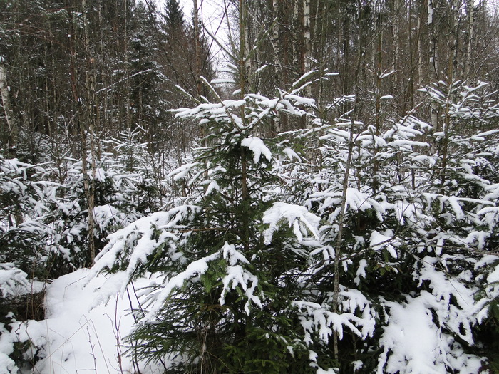 Снег хрустел под ногами, как-то влажно и противно, будто корова поедает кормовые буряки. Но в целом в лесу было торжественно и тихо. День как будто дремал. С пасмурного высокого неба изредка падали одинокие снежинки. Мы осторожно дышали на них, и они превращались в чистые капли воды, потом мутнели, смерзались и скатывались на землю, как бисер. Пошли в поход не на лыжах. Алексей говорил: «Первая пороша не санный путь».