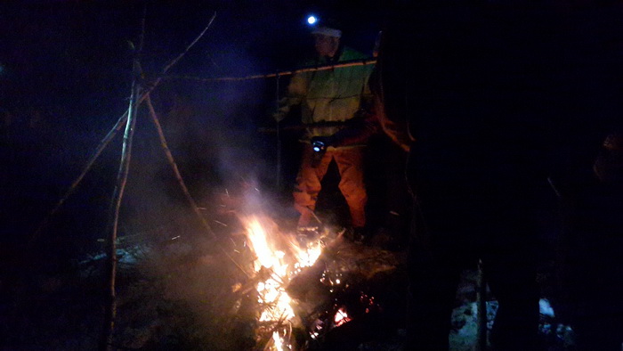 Когда мы уже колдовали у костра со стороны вышки послышалось знакомое : У-о-у, У-о-у, Вау! «Крик пьяного бобра» и из сумерек вышел самый настоящий Игорь Пузо.