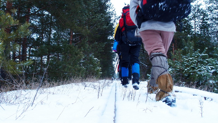 Очень волновала Глазова угроза о применении в походе лыж «при достаточном количестве снега». Гуляя с женой и дочками, я периодически отпрыгивал с расчищенных дорожек на заснеженный газон. Измеряя затем дома объём выжатой из носков воды, можно было определить количество осадков в миллиметрах. Выходило, что достаточно. Занимаясь измерениями я, кстати, подумал, что сапоги то уж точно понадобятся, а раз так, значит надо успеть их разносить. Купил я их почти год назад, буквально за день до похода в урочище Мармулевское, внезапно обнаружив, что старые расплавил на Гайне при бесполезных попытках высушить. Естественно, что привыкнуть к новым я не успел, и, ковыляя  тогда по льду Сергеевичского озера, спасался от боли в натёртых ногах общеизвестным пероральным анестетиком с простой химической формулой (отпускается в магазинах без рецепта). В это раз я всю неделю ходил на работу в резиновых сапогах (!), прячась в раздевалке от любопытных медсестёр, дабы избежать ненужных расспросов и домыслов.