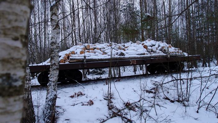 В подтверждение сказанному, на развилке стояла ржавая платформа с номером «348», груженая березовыми и осиновыми чурбаками. Мы, ребята, уперлись в платформу и попытались сдвинуть ее с места.