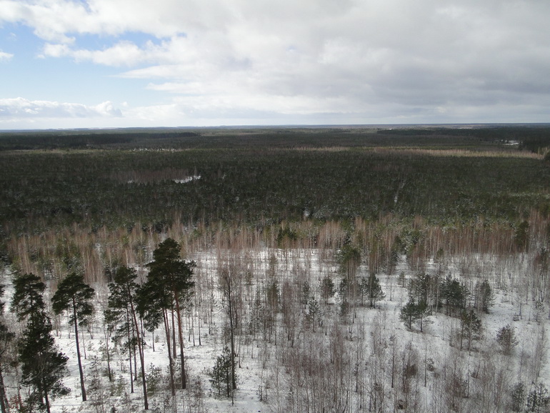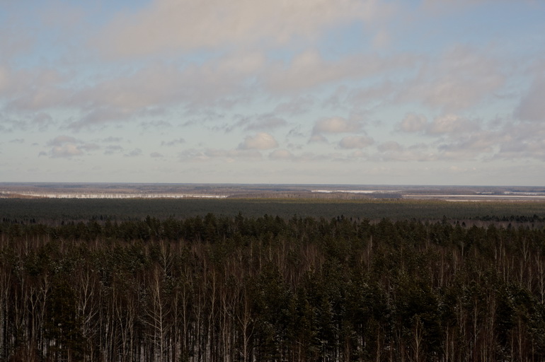 Мечта сбылась! Я добрался до тригопункта, и теперь спускаюсь с его вершины. Притормозив, я огляделся по сторонам. Низкое солнце освещало необъятные просторы леса, то здесь, то там прерываемого просеками и вырубками. Огромный круг горизонта переходил в купол бледного зимнего неба.