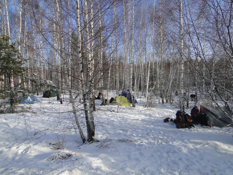 Проснулся я среди ночи с уже ставшим привычным флэшбэком Брюхиной палатки на Гайне. «Значит, я всё-таки с Русей на Гайну пошёл?» - стуча зубами, спросонья не мог разобраться я, так как Руся, узнав, что я не иду с Глазом, активно зазывал меня на прогулки в Борисовском районе. Спустя пару недоумённых минут пришло озарение. Я лежал около самого входа в палатку, и её снежно-мокрая дверь обволакивала меня с двух сторон. Толстый зимний спальник (кстати, собственность друга Паши, который подвозил) набряк влагой. Скорее всего, Глаз, увидев вопиющий захват своей территории, просто сдвинул меня на мой коврик. Но я не желал сдаваться. Перекулившись через Глаза, 95-ю килограммами расклинил свободное пространство между Алексеем и Полковником.