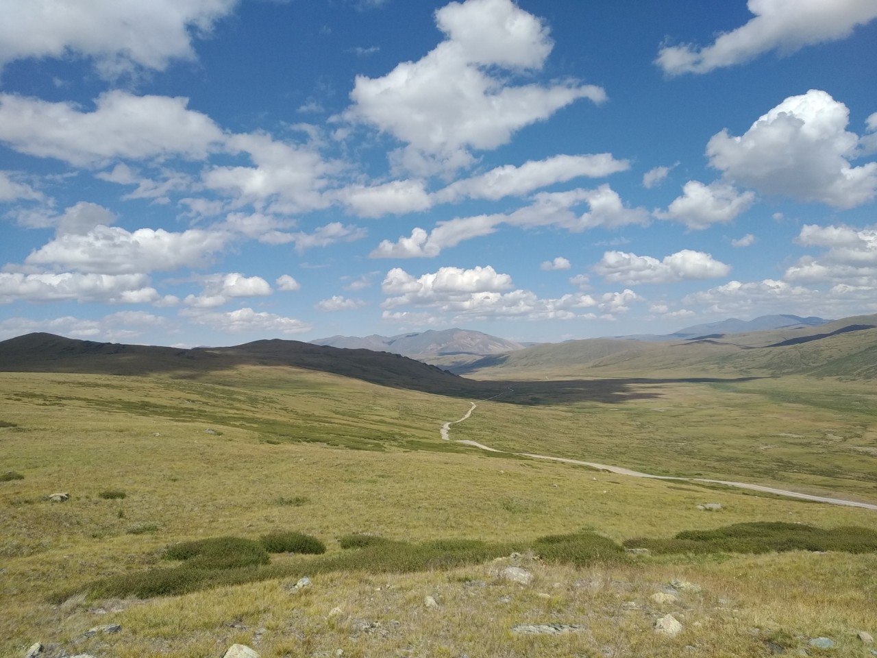 Заброску вчера занесли. Сегодня три четверти дня шагали по дороге. Вдоль - Плато Укок примерно 60 километров. Тундростепь раскинулась широким горизонтом и просматривалась на десятки километров. Двигались мы в направлении реки Ак-Алаха. То есть на запад. В неё сбрасываются все реки Плоскогорья Укок. Впадает она в Аргут. Если мне не изменяет память, по ней ходил Назарчук.