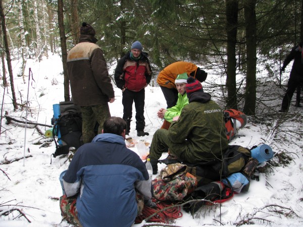 У нас жа, ГПМ, было вогнішча, была гарбата з бутэрбродамі і іншыя ласункі і прысмакі. У паходах, дзе уся ежа нясецца у заплечніках, кожны стараецца хутчэй пачаставаць іншых сваёй часткай ежы, каб скінуць як мага больш вагі паклажы.