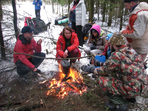 Час ад часу хтосьці з'яўляўся каля кастра, каб пачаставацца супам ці гарбатай.