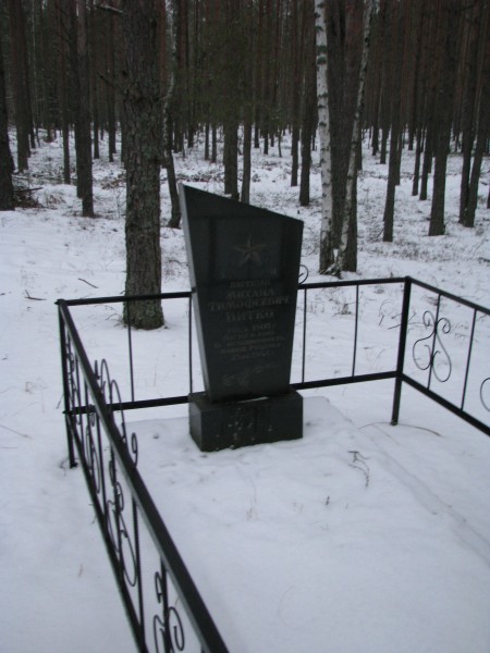 Выйшлі да месца, якое на генштабаўскіх сотках пазначана як "братэрская магіла". Чамусці помнік дастаткова новы і усталяваны у гонар толькі аднаго загіблага тут 25.10.1944 (?), калі лінія фронту знаходзілася ужо за межамі Беларусі.