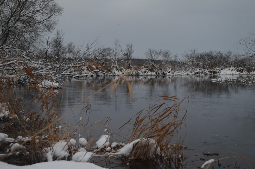 Все чаще стали падать в воду. На морозе, пусть и небольшом, в воду падать нехорошо. Все громче стали вогласы, все браннее стали восклицания, всё матернее и нервознее реплики. С каждым падением и погружением выше колена в зловонную воду я и сам уже матерился еа чём стоит свет. Не выматеришься - не отведешь душу. Не отведешь душу - будешь держать в себе. Будешь держать в себе - так быстро выгоришь. По расстоянию прошли мы дальше совсем не много. Выбрались наконец на заливной луг. Это была темнота, довольно зловещая. Всюду, казалось, вода, из которой торчат редкие кустики и всё переплетено жухлыми стеблями осоки и рогоза. Где-то там в темноте угадывались темные силуэты вербных шаров. Скопления кустов - там река. К ней тяготятся крупные кусты.