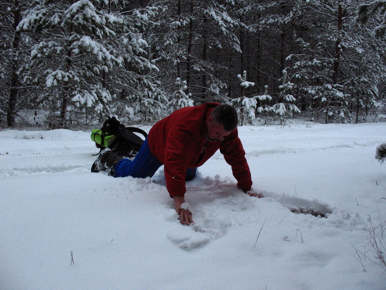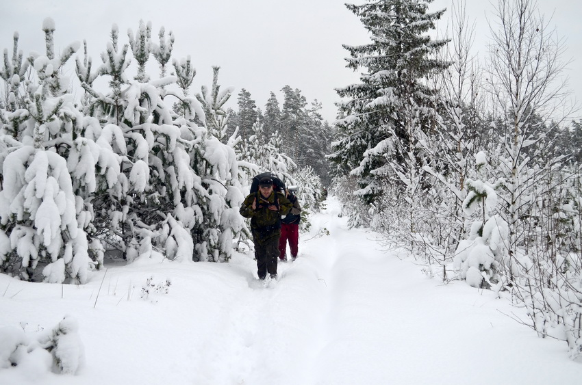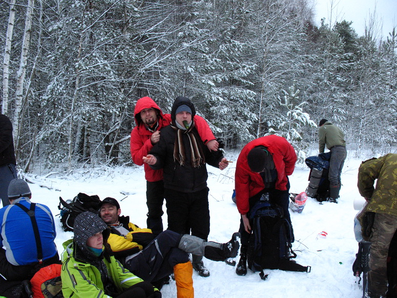 Минус три-минус пять. Снежок то не шел совсем, то немного шел. К выходу на Борисовский полигон все три группы пришли почти синхронно. Нигде не останавливались, но человек десять почему-то были уже изрядно влитыми. Самые проблемные кадры Глаз взял в свою подгруппу. И даже закрепил Андрюшу Русьянова смотрящим за Димой-Сонькой. Подопечный правда выглядел пока значительно свежее своего куратора.